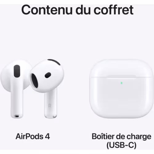 Les Apple AirPods 4 redéfinissent l’expérience audio sans fil avec une qualité sonore exceptionnelle et un design repensé pour un confort optimal. Parfaits pour écouter de la musique, des podcasts ou passer des appels, ils offrent une connexion fluide et stable avec tous vos appareils Apple.