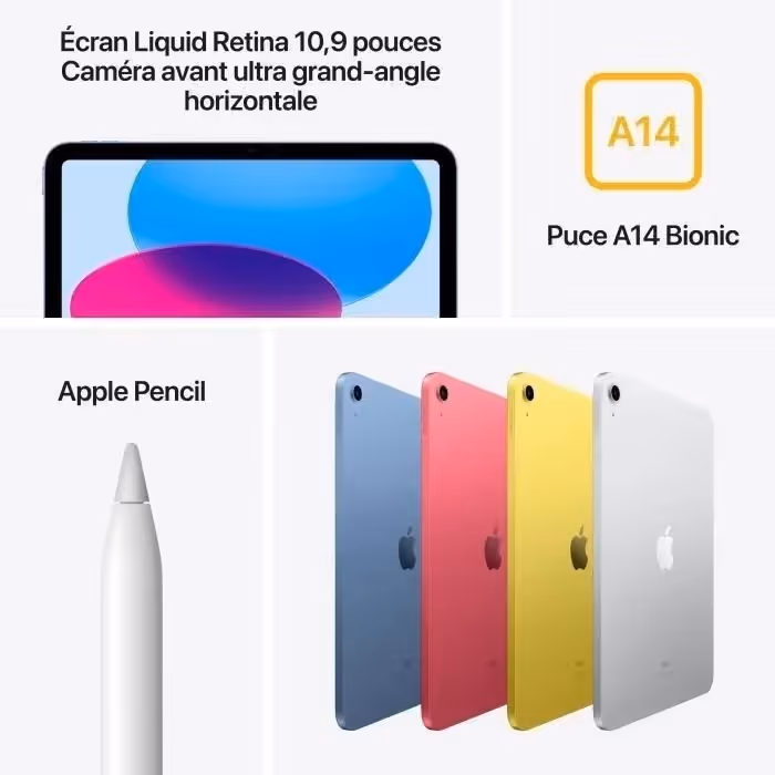 Avec l'iPad 10È, vous bénéficiez de la liberté de travailler, d'apprendre et de vous divertir où que vous soyez, tout en profitant d'une expérience Apple fluide et de qualité.