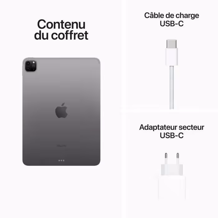 Léger, fin et doté d’une élégante finition Gris Sidéral, l’iPad Pro M2 11" se transporte facilement partout, tout en offrant une connectivité rapide et fiable grâce au WiFi avancé. C’est l’appareil idéal pour travailler à distance, concevoir vos projets ou profiter de vos contenus multimédias en toute fluidité.