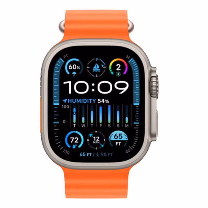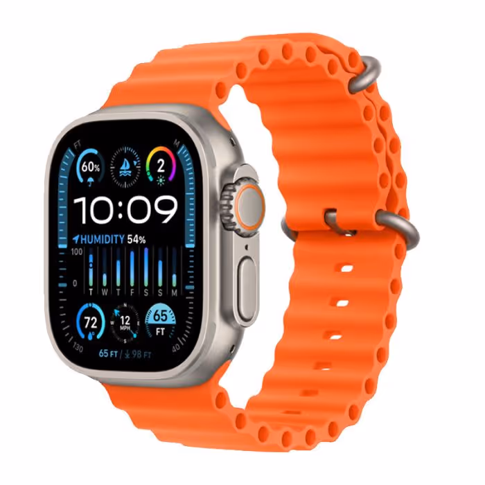 Apple Watch Ultra 2 GPS 49mm – boîtier Titane, bracelet Orange Océan.