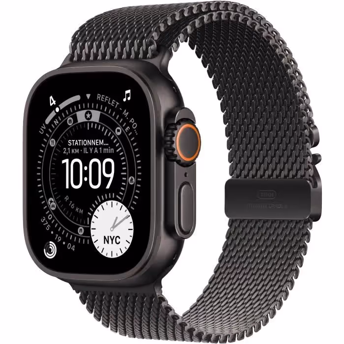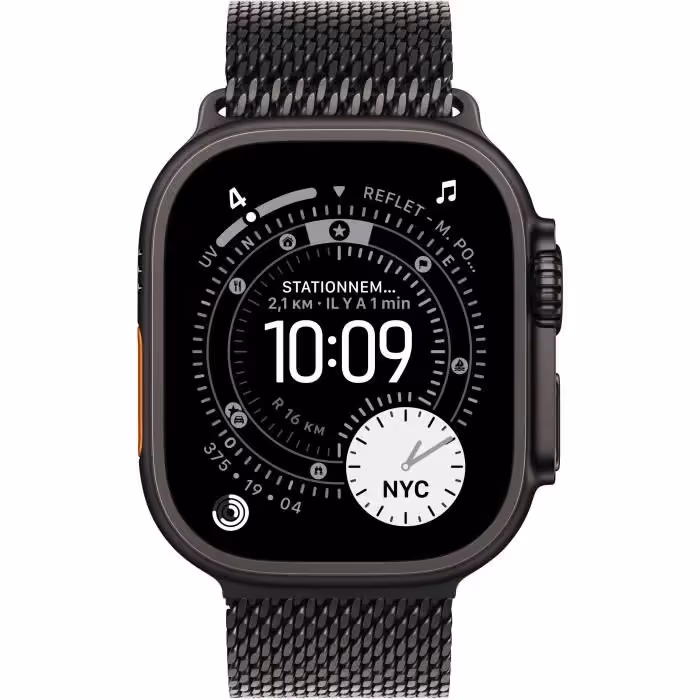 Dotée de la connectivité GPS + Cellular, elle permet de rester connecté même sans iPhone à proximité : appels, messages et streaming de musique directement depuis votre poignet. Son écran Retina Always-On ultra lumineux de 49 mm offre une lisibilité parfaite, même en plein soleil ou lors d’activités extrêmes.