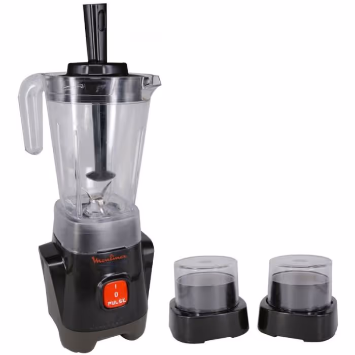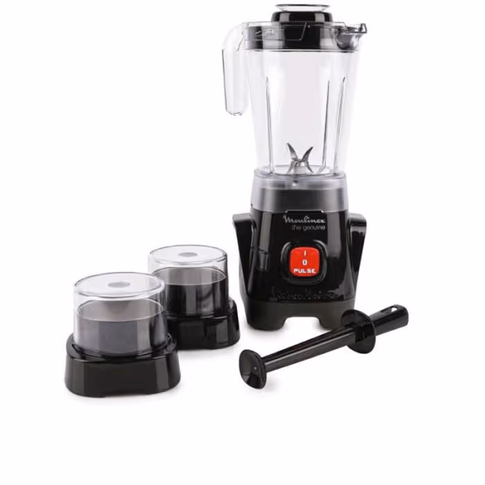 Blender MOULINEX + Moulin & Hachoir - Puissance Moteur: 400 Watts - Capacité du Bol: 0.8 Litres - 1 Vitesse + Pulse - Lames en acier inoxydable - Pieds antidérapants - Couleur: Noir - Garantie: 1 an