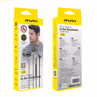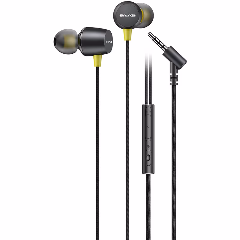 Écouteurs filaires AWEI L5 Noir, conçus pour un son de haute qualité avec un design ergonomique qui offre un confort d'écoute prolongé. Dotés d'un câble de 1,2 mètre et d'une prise jack 3,5 mm, ils sont compatibles avec de nombreux appareils. La réponse en fréquence de 20-20 000 Hz et la sensibilité de 95 dB offrent une expérience audio équilibrée, idéale pour la musique et les appels. Léger et robuste, parfait pour un usage quotidien. Couleur : Noir.