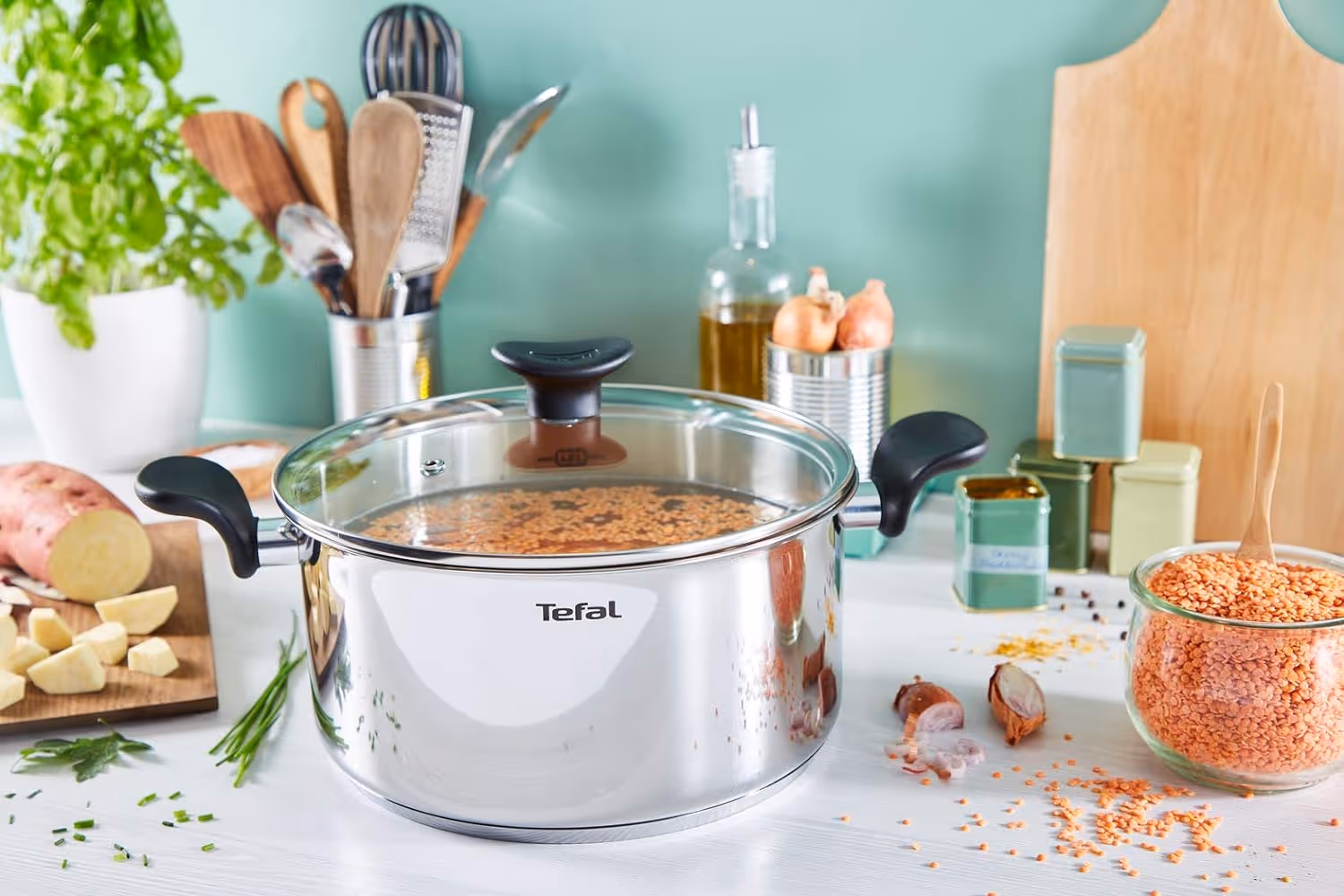 Le Faitout Inox Tefal 24cm Primary 5L est l'outil de cuisine parfait pour les amateurs de plats mijotés et de cuissons lentes. Sa capacité généreuse de 5L, sa conception robuste en inox et son couvercle en verre font de ce faitout un allié de taille dans votre cuisine. Avec des résultats de cuisson homogènes, une sécurité assurée, et une facilité de nettoyage, il est idéal pour les cuisiniers à la recherche de praticité et de performance.