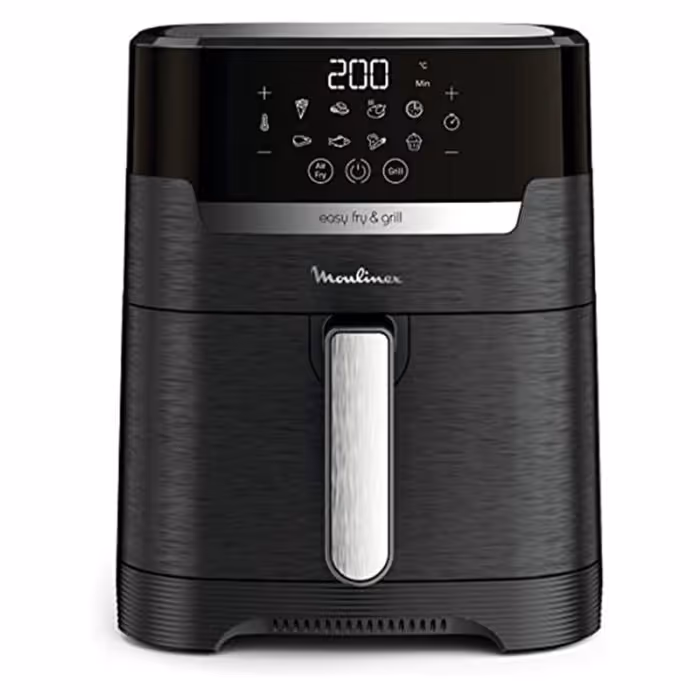 Friteuse Grill Sans Huile MOULINEX - Puissance: 1550 Watts - Capacité: 4.2 Litres - Idéale pour de copieux repas avec 6 personnes maximum - Température: 80 à 200°C - Minuterie: 60 minutes - 8 programmes - Mode de cuisson: Croustillant , Cuire, Cuisson croustillante , Dorer , Gril , Gril ventilé , Rôtir , Saisir , Cuisson douce , Frire - Alerte automatique - Allumage électrique - Avec afficheur - Tactile - Appareil facile à nettoyer - Couleur: Noir - Garantie: 1 an