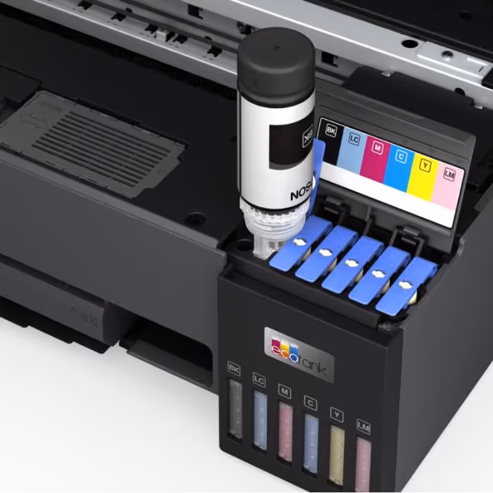 - L'Epson L18050 utilise un système d'encre à réservoir qui remplace les cartouches traditionnelles. Les réservoirs sont facilement remplissables et offrent une capacité d'impression exceptionnelle, permettant de réduire les coûts par page.
