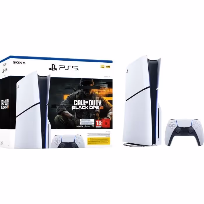 Pack PS5 Standard avec console PlayStation 5 Slim, manette DualSense blanche et jeu Call of Duty : Black Ops 6 en code de téléchargement. Performances ultra-rapides, graphismes 4K et immersion totale.