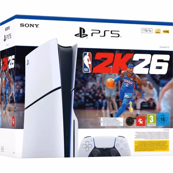 Plongez dans l’univers du basketball avec le Pack PS5 Standard comprenant la console PlayStation 5 Slim (1 To) et le jeu NBA 2K26 (code inclus). Profitez de graphismes en 4K HDR, du retour haptique, des gâchettes adaptatives et du SSD ultra-rapide pour une expérience de jeu fluide, immersive et nouvelle génération.