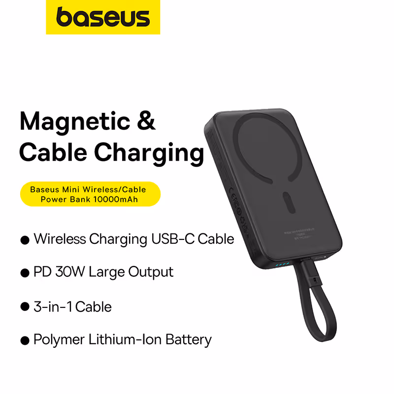 Redéfinissez votre expérience de charge avec la batterie externe Baseus Magnetic Fast Charge Type-C Edition 10000mAh . Cette batterie externe prend en charge la charge magnétique et par câble. Avec une puissance de sortie impressionnante de 30 W, cette batterie externe assure une charge rapide . Elle vous permet de revenir à vos priorités sans délai. Grâce aux batteries externes à charge rapide de Baseus , vous n'aurez plus à vous soucier des câbles encombrants ni à chercher le bon connecteur.